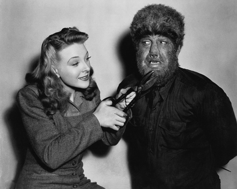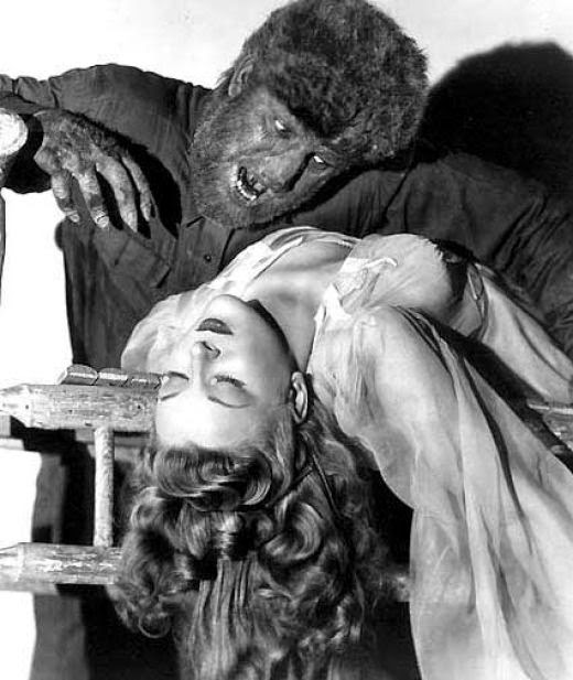 The Wolf Man menaces leading lady Evelyn Ankers in a publicity photo for the picture.